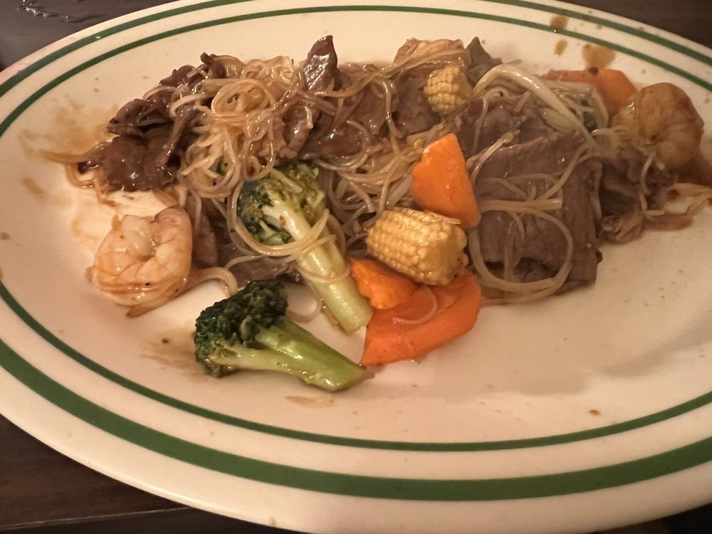“ This place... oh my goodness, this place. The GEM of the Illinois Valley. I could sing praises to Mongolian Grill from the rooftops, and I would if I had access to a roof. Let me state that I have been eating here since they opened, around 2013-2014 perhaps. Everything has stayed consistent, including the pricing, and that's been impressive. When you walk in, you have the option of ordering from the menu or doing the buffet and let me tell you- get the buffet. If you can cook at all, you will enjoy yourself here. You'll get your soft drink, then it's off you go to build your masterpiece. Five separate buffets with two side stations, there's a lot to process. There's two small stations, one for fried rice and one for ice cream. There's a cold bar in the back which features some salad items and desserts, and one buffet table full of ready to eat apps and foods with some soups offered. I did giggle that the one says "eggg dorp soup". It's what you'd expect at any Chinese buffet. Then we get to the good stuff- the hibachi stuff. You have three bars for hibachi: your noodles and veggies, your meats, and your sauce ingredients. You get a bowl and load it up with your choice of noodles and veggies, there are so many options. Tofu, egg, zucchini, baby corns, broccoli, water chestnuts, sprouts... I can't get enough color! Then you move over to the meat buffet, where you select your raw cuts and place the pieces in your bowl. I typically do the beef and shrimp, always good quality. You'll bring your bowl to the hibachi grill and set it on the counter so they can start cooking it. You'll go make your sauce at this point, which is where it could get overwhelming if you don't know flavors well. There are probably 20 sauces to mix and about 25 seasonings and the likes to add flavor, so there's a lot of room for creation with your sauce! You'll bring it up to the hibachi again when you're done, and they'll plate your order and bring it to you if needed. For $10.99 a person, what a stellar deal. So much fresh produce and variety from a family owned business, it's a staple in the Illinois Valley. Although I've moved to another state at this point, this is the one restaurant I haven't seen done this well and one I miss whole heartedly. I visited the IV from Florida recently and ensured I ate there several times because I just can't get enough of the great service and incredible food. If you haven't eaten here yet, you're missing out. Stop by today and build yourself the meal you deserve. ”
